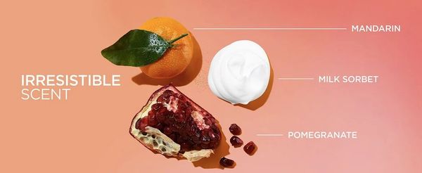 Sự kết hợp của lựu tươi mát – cam – kem sữa mát lạnh mang đến hương thơm cuốn hút, dễ chịu sau mỗi lần gội.