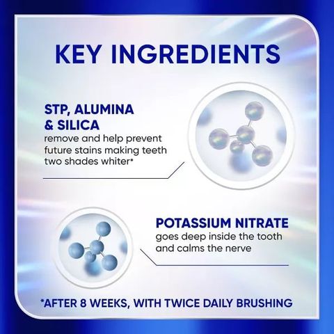 - Công thức ba tác động chứa các thành phần làm trắng đã được chứng minh lâm sàng giúp làm trắng, đánh bóng và bảo vệ răng khỏi các vết ố trong tương lai. Nhệ nhàng để sử dụng hàng ngày