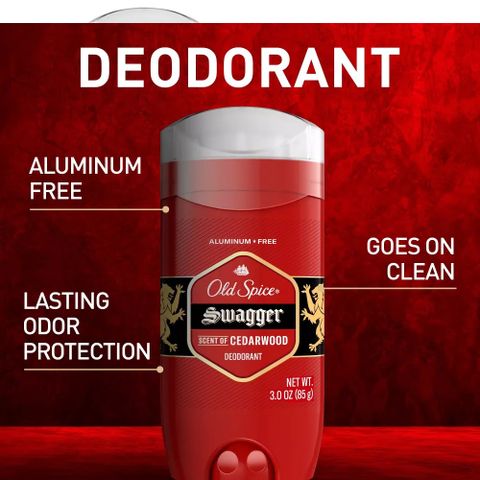 Old Spice Swagger là lăn khử mùi dành cho nam, nổi bật với mùi hương gỗ tuyết tùng (Cedarwood) mạnh mẽ, nam tính và cuốn hút. Sản phẩm giúp bạn luôn cảm thấy khô thoáng, sạch sẽ và tự tin suốt ngày dài trong sinh hoạt và vận động hàng ngày.