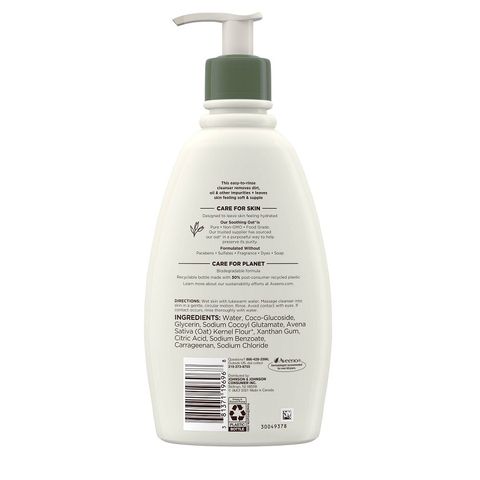 Aveeno Daily Moisturizing Facial Cleanser là sữa rửa mặt yến mạch loại bỏ triệt để bụi bẩn, dầu và tạp chất, đồng thời dưỡng ẩm cho da. Sữa rửa mặt dưỡng ẩm được thiết kế cho da khô mang lại cảm giác mềm mại và dẻo dai cho da Công thức từ yến mạch nguyên chất, không biến đổi gen, có nguồn gốc từ thực phẩm theo cách có mục đích để giữ được độ tinh khiết